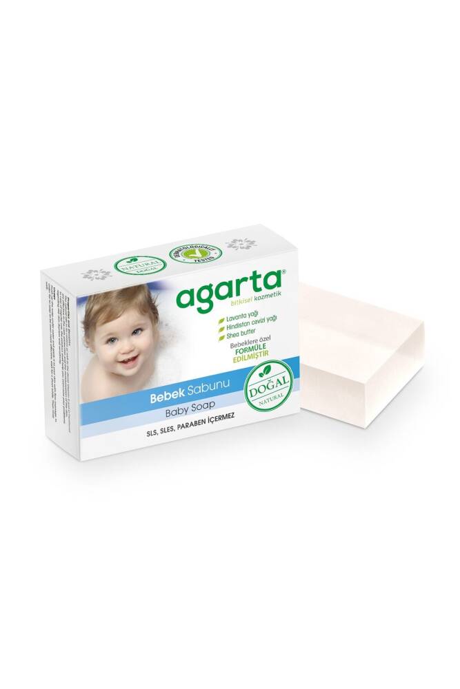 Agarta Doğal Bebek Sabunu ile Bebeğinizin Cildini Tahriş Etmeden Temizleyin!Lavanta yağı ve hindistan cevizi yağı içeren %100 doğal Agarta Bebek Sabunu bebeğinizin hassas cildini nazikçe temizler