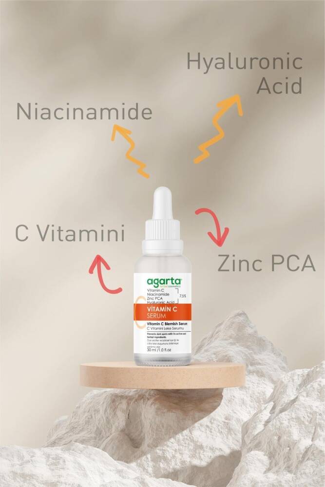 C vitamini türevi (Sodium Ascorbyl Phosphate), niacinamide ve hyaluronik asit içeren bu özel formüllü serum