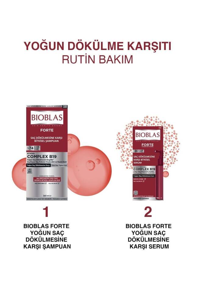 Bioblas Forte şampuan, yoğun içeriği sayesinde saç ve saçlı deriyi besleyip saçların daha canlı, güçlü ve sağlıklı olmasını sağlar. %74 bitkisel içeriği ile yoğun saç dökülmelerine karşı etkilidir. Saç köklerini besler ve saçların uzamasına ve güçlenmesine yardımcı olur. Günlük kullanıma uygundur.