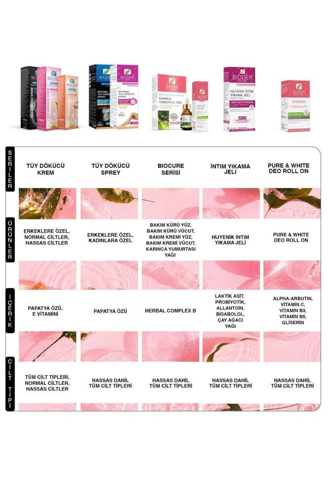• Bioder bioder bitkisel tüy dökücü sprey 175 ml Bioder bitkisel* tüy dökücü sprey kısa tüylere bile etki eder.