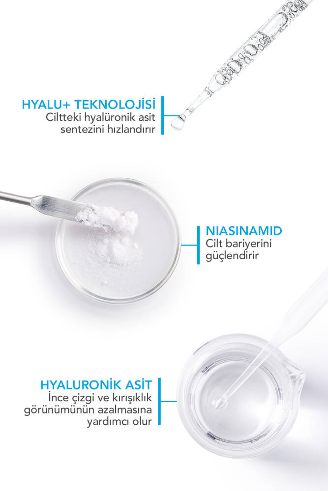 İçerdiği hyalüronik asit ile cildi derinlemesine nemlendirirken erken yaşlanma karşıtı etki sunarak, ince çizgilerin görünümünde azalmaya yardımcı olur. HYALU+ Teknolojisi cilde ihtiyacı olan nem desteğini sunarak dolgun bir görünüm sağlar. Cildin doğal ışıltısını geri kazanmasına yardımcı olur. İçeriğindeki niasinamid ile cilt bariyerini güçlendirir.