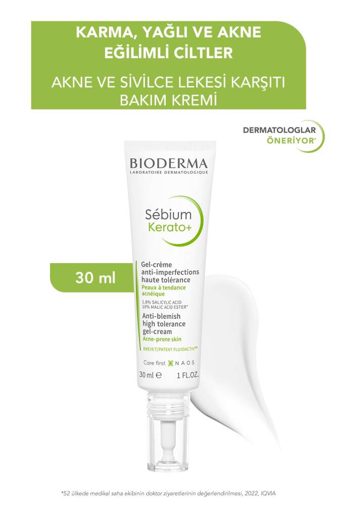 • Sebium Kerato+, saf olmayan ve akneye meyilli ciltler için özel olarak geliştirilmiş bir günlük bakım ürünüdür. Sebium Kerato+, yüksek etkinliği çok iyi cilt toleransı ile birleştirir. Kirler ve siyah noktalar yok edilir ve sivilce izleri azalır. Aynı zamanda cilt konforu korunur. Akneye ve iltihaplı sivilcelere, papüllere ve püstüllere eğilimli saf olmayan ciltler için idealdir...