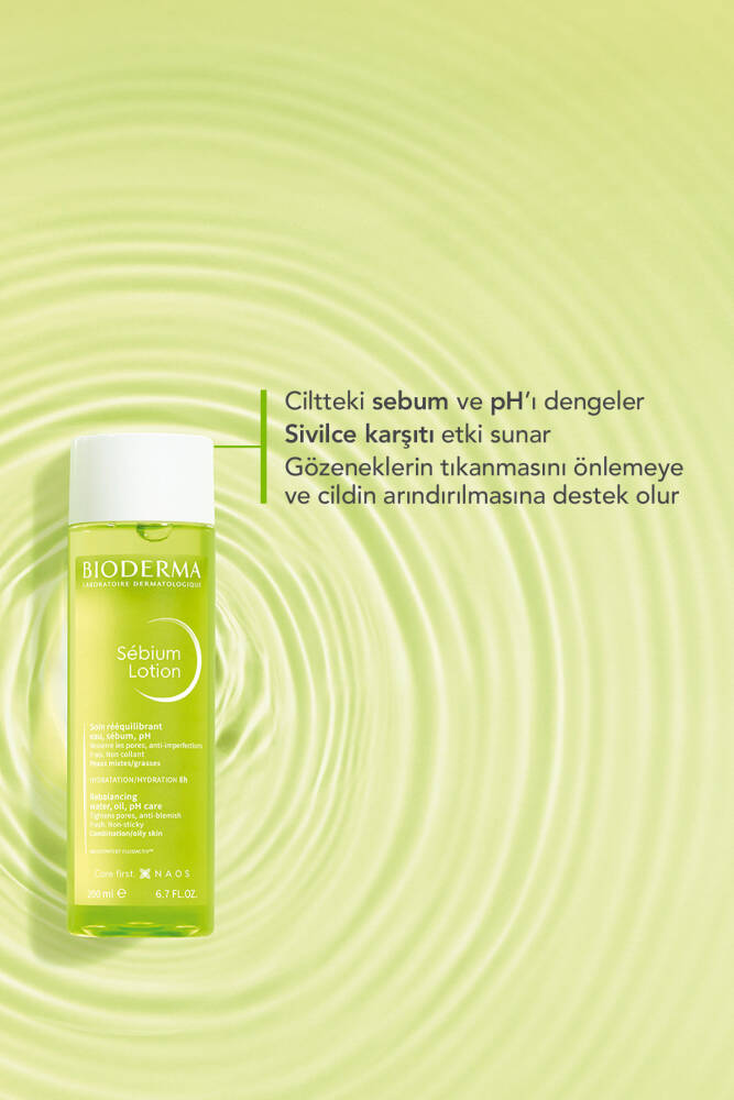 Bioderma Sebium Lotion 200ml Yağlı ve Hassas Ciltler İçin Sıkılaştırıcı ve Arındırıcı Tonik Yağlı ve hassas ciltler için gözenekleri sıkışalaştırmayı hedefleyen, cilt pürüzlerine karşı etkili arındırıcı tonik. 3 ana etkisi ile 8 saate kadar cildin nemlendimesine, cilteki sebum ve ph'ın düzenlenmesine destek olur. Cildin arınmasına yardımcı olurken, cilt pürüzlerine karşı da mücadele eder. Patentli içeriği sayesinde ciltteki sebum kalitesinin düzenlenmesine destek olur ve gözeneklerin tıkanmasını önlemeyi amaçlar. Kullanım Şekli: Sebium H2O ya da Sebium Foaming Gel ile temizlenmiş cilde sabah ve/veya akşam uygulayın. Günlük cilt bakım ürünlerinizi uygulamadan önce parmak uçlarınızla masaj yaparak ya da bir pamuk yardımıyla ile Sebium losyonu uygulayın. Göz ile temasından kaçının. Ürün İçeriği: aqua/water/eau, peg-11 methyl ether dimethicone, butylene glycol, glycerin, fomes officinalis (mushroom) extract, capryloyl glycine, polysorbate 20, sodium citrate, zinc gluconate, salicylic acid, sodium hydroxide, mannitol, sodium metabisulfite, xylitol, rhamnose, pyridoxine hcl, propyl gallate, peg-40 hydrogenated castor oil, fructooligosaccharides, phenoxyethanol, fragrance (parfum).
