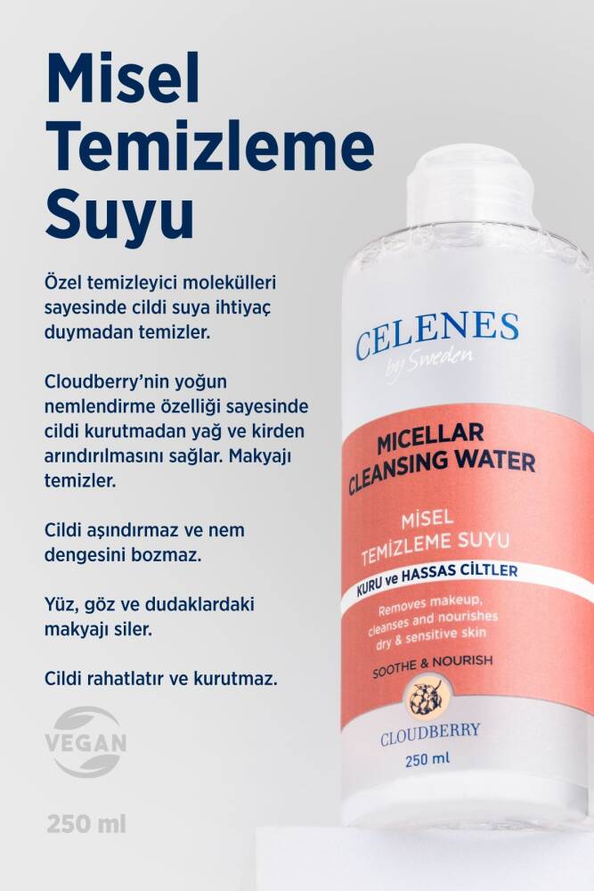 Celenes Yoğun Nemlendici Ve Yatıştırıcı Cloudberry Misel Temizleme Suyu Kuru Ve Hassas Ciltler 250 ml