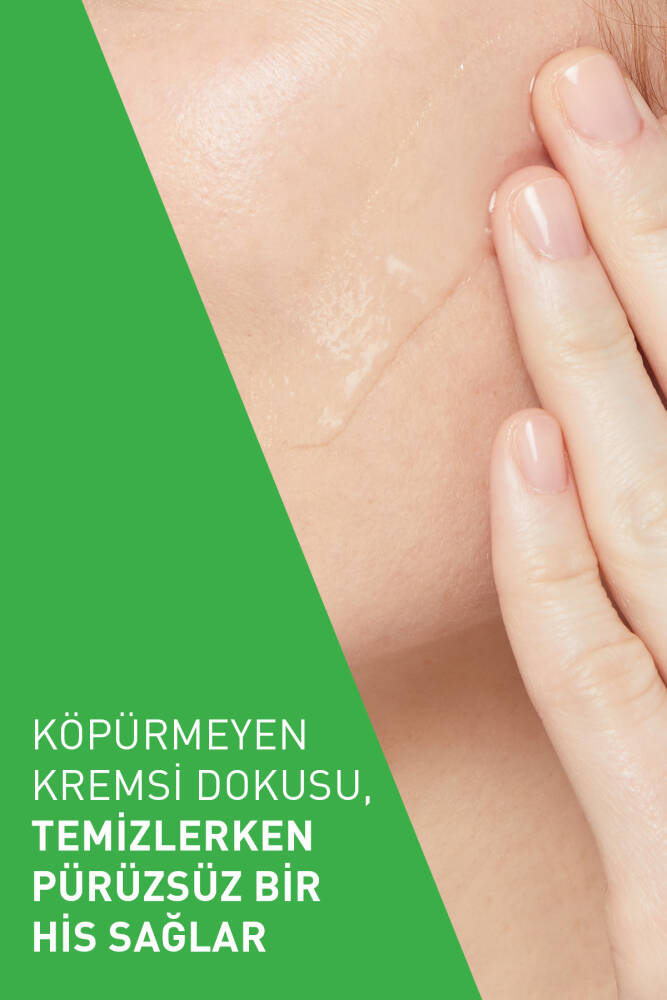 • CeraVe Nemlendiren Temizleyici, cildin koruyucu bariyerini koruyarak ve cildin nemini kaybetmesine sebep olmadan cildi temizler. Dermatologlarla birlikte geliştirilen CeraVe Nemlendiren Temizleyici, cildin nemi hapsetmesine yardımcı olmak için cildin doğal bariyerini onarmaya yardımcı olan seramidler ve hyalüronik asit gibi bileşenler içeren nazik bir yüz yıkama ürünüdür. CeraVe Nemlendiren Temizleyici, cildi kuru hissettirmeden temizlemek için tasarlanmıştır. Cildin koruyucu bariyerini onarmaya yardımcı olmak için 3 temel seramid, cildi nemlendirmek için hyalüronik asit ve MVE Teknolojisi içerir. MVE teknolojisi sayesinde, gün boyu nemlendirme için nemlendirici bileşenlerin salınımını gerçekleştirir. Komedojenik olmayan bu temizleyici, herhangi bir cilt bakım rutininin başlangıcı için etkili bir üründür. Su bazlı Nemlendiren Temizleyici, normal ve kuruya dönük ciltler için uygundur. Komedojenik değildir, gözenekleri tıkamaz. Parfüm içermez.