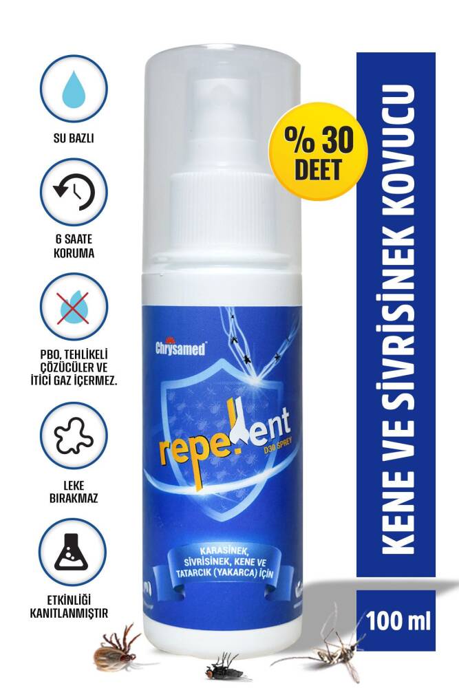Sivrisinek, karasinek,tatarcık(yakarca) ve kenelere karşı etkili olan Chrysamed Repellent D30 Vücut Spreyi, geliştirilmiş güçlü formülüyle uzun süreli bir koruma sağlar.