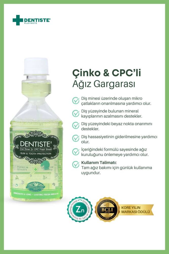 Dentiste’ Çinkolu ve CPC’li Ağız Gargarası ile ağız içindeki zararlı bakterilerin %99,9 unu 1 dakikadan kısa sürede öldürür.