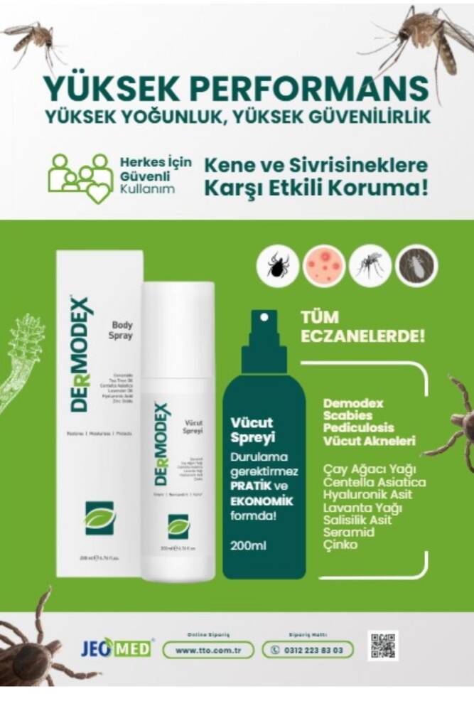 Kullanımı:İstenilen bölgeye sabah ve akşam olmak üzere DERMODEX VÜCUT SPREYİNİ uygulayınız.
