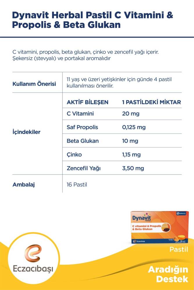 Dynavit HerbalPastil C Vitamini & Propolis & Beta Glukan