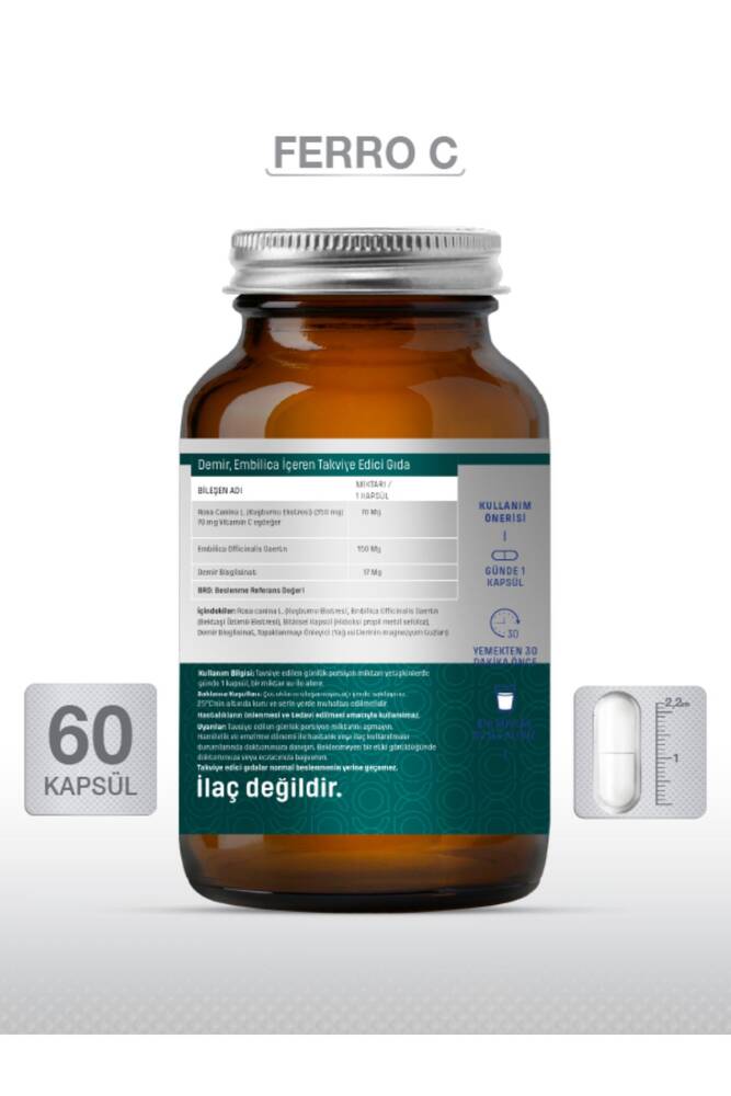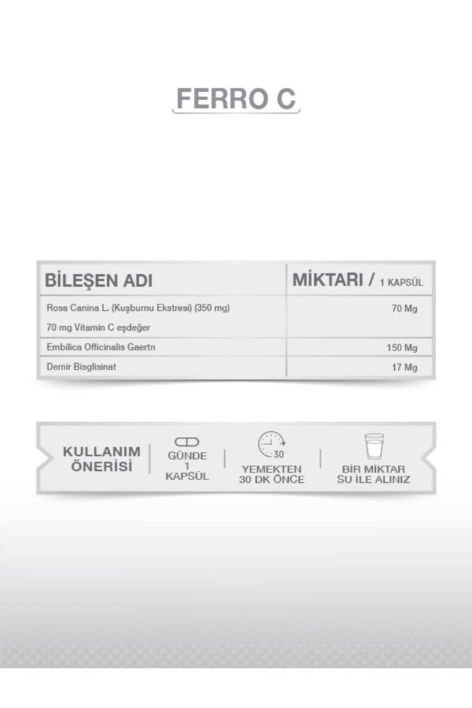 (Kuşburnu Ekstresi) (350 mg) (70 mg Vitamin C eşdeğer 70 mg %87,5 Embilica Officinalis Gaertn 150 mg - Demir Bisglisinat 17 mg 121,4 BRD: Beslenme Referans Değeri