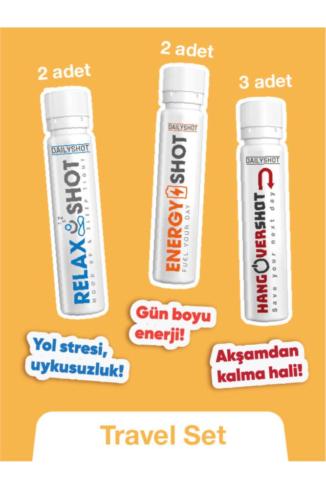Travel Set içinde 2 adet RelaxShot, 2 adet EnergyShot ve 3adet HangoverShot bulunur.