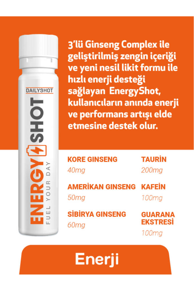 3’lü Ginseng Complex ile geliştirilmiş zengin içeriği veyeni nesil likit formu ile hızlı enerji desteği sağlayan EnergyShot,kullanıcıların anında enerji ve performans artışı elde etmesine destek olur.Seyahatlerde enerjinizi yükseltmek istediğiniz her an EnergyShot yanınızda!