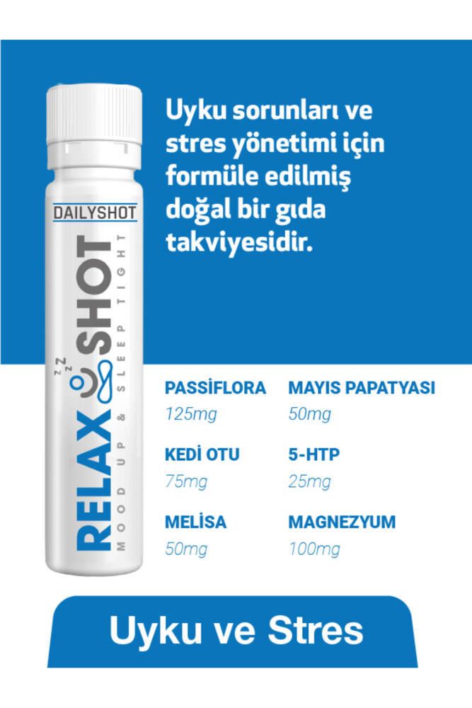 Uyku sorunları ve stres yönetimi için formüle edilmiş,içeriğinde Passiflora ekstresi, Kedi otu ekstresi, Magnezyum, 5-HTP,L-Theanine, Melissa ekstresi, Mayıs papatyası ekstresi ve B6 Vitamini bulunan doğalbir gıda takviyesidir