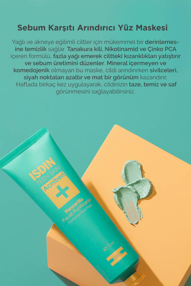 ISDIN Acniben Arındırıcı Yüz Maskesi, yağlı ve akneye eğilimli ciltler için mükemmel bir derinlemesine temizlik sağlar. Tanakura kili, Nikotinamid ve Çinko PCA içeren formülü, fazla yağı emerek ciltteki kızarıklıkları yatıştırır ve sebum üretimini düzenler. Mineral içermeyen ve komedojenik olmayan bu maske, cildi arındırırken sivilceleri, siyah noktaları azaltır ve mat bir görünüm kazandırır.