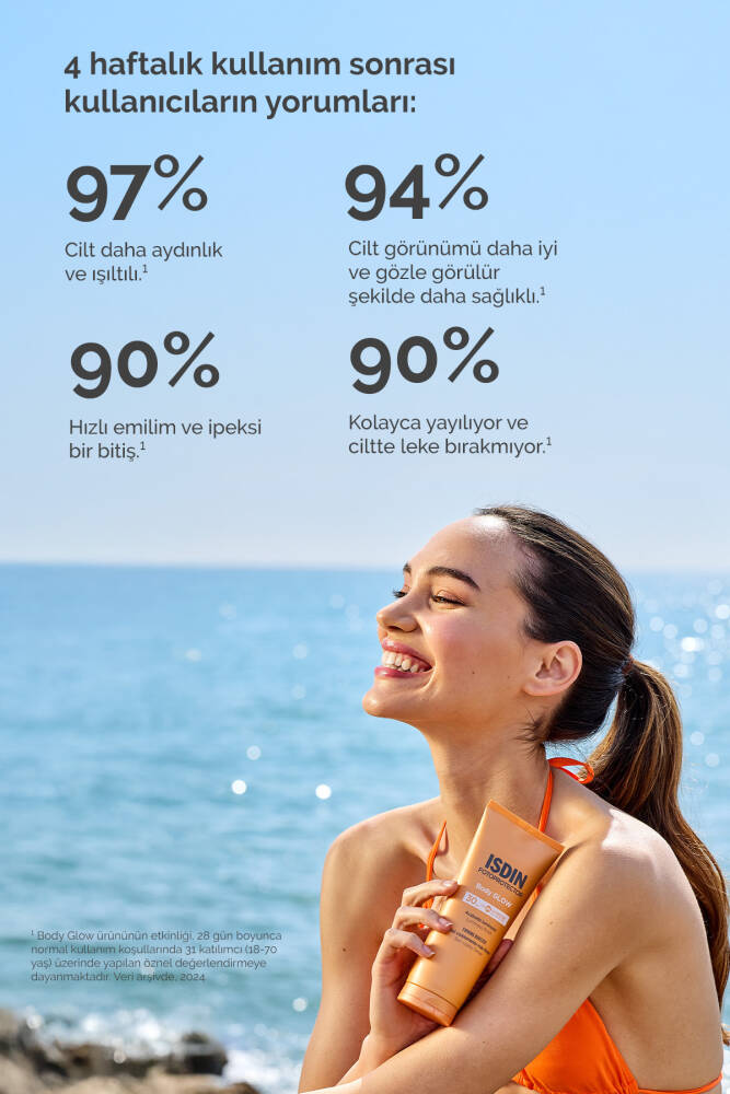 Parlak ve aydınlık bir görünüm sunan, hafif yapılı güneş koruyucu vücut losyonu.