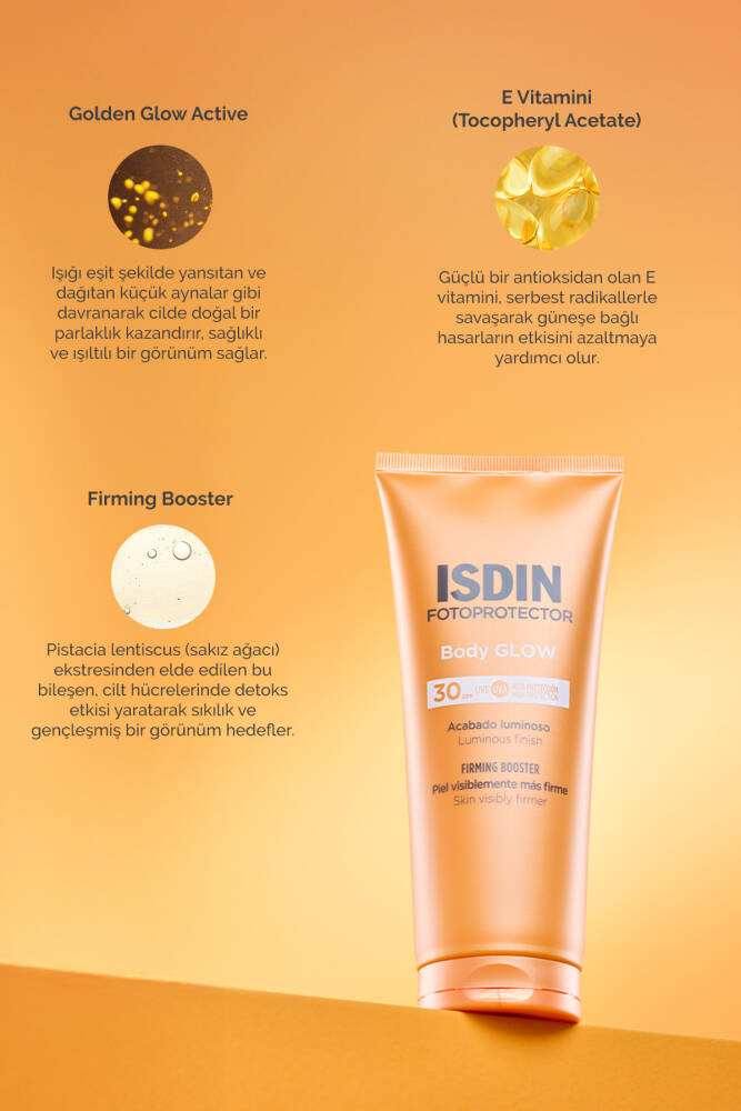 Anında emilen hafif dokulu losyon formundaki bu vücut güneş koruyucu, anında ışıltı etkisi için Golden Glow Active içerir. Firming Booster içeren formülü sayesinde cilde sıkılık kazandırır ve görünümünü gözle görülür şekilde .