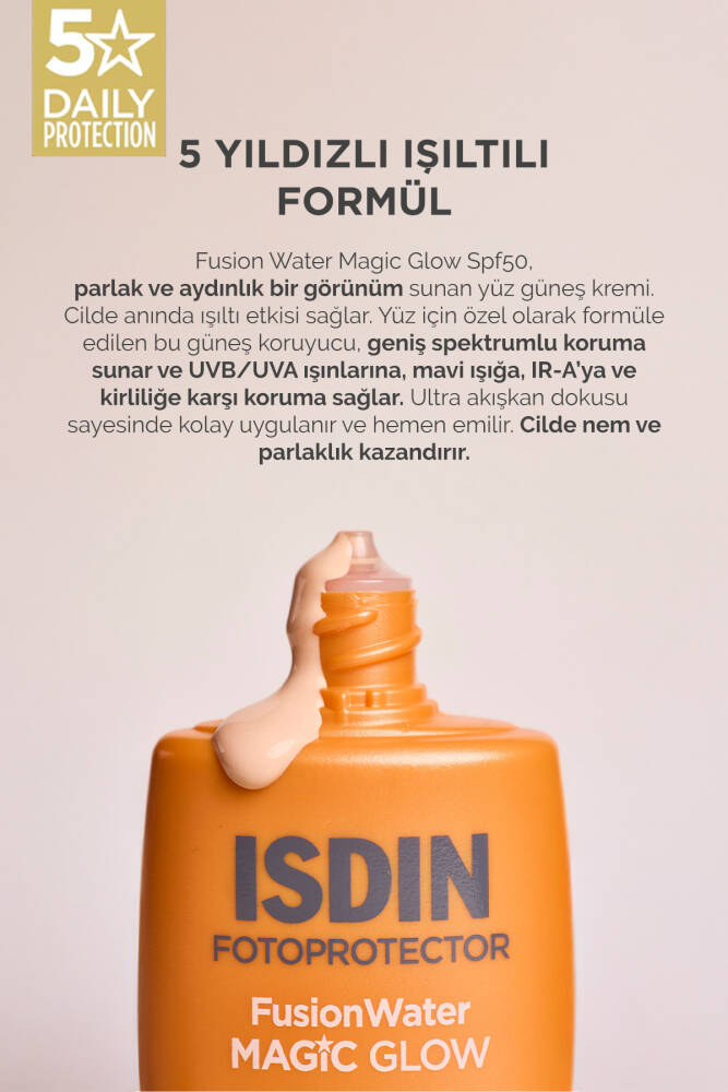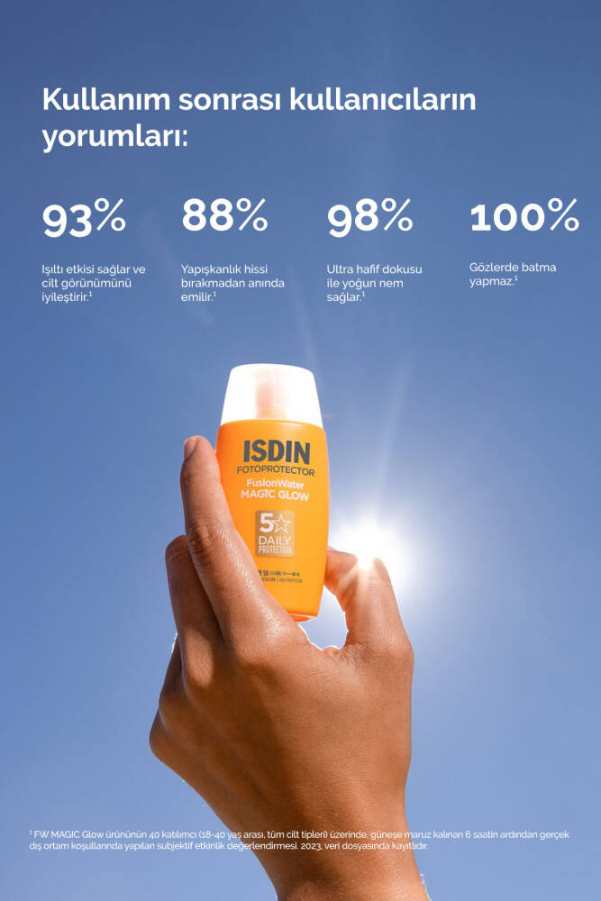 - Fusion Water MAGIC GLOW SPF 50’yi güneşe çıkmadan yarım saat önce kuru cilde yeterli miktarda uygulayın.