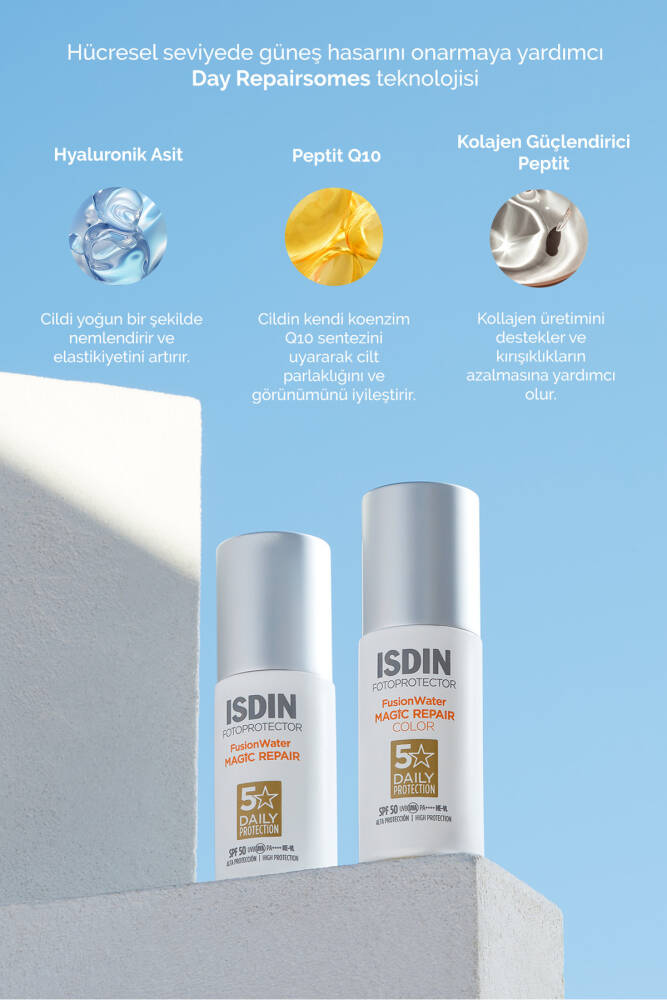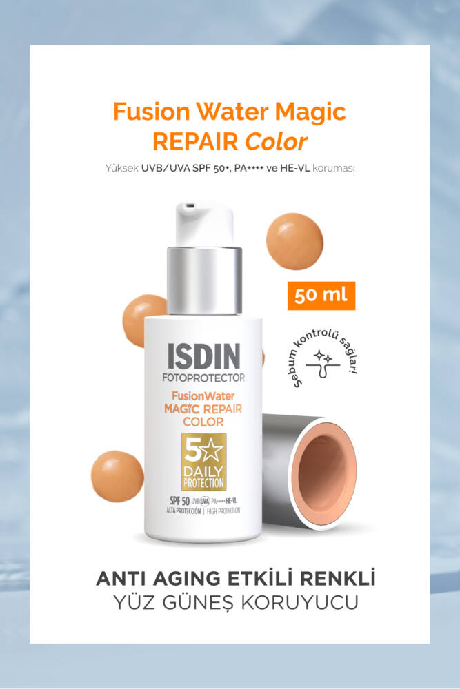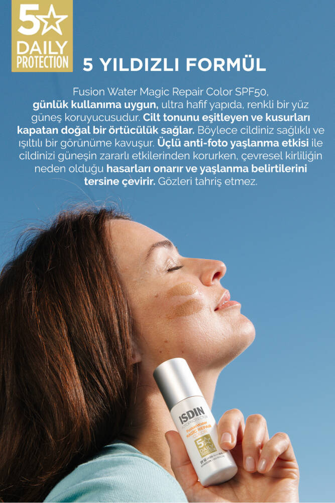 ISDIN Fusion Water Magic Repair Color SPF 50 , hem cilt koruması hem de doğal bir görünüm arayanlar için mükemmel bir tercihtir.