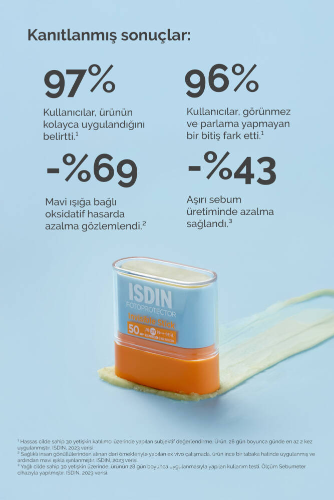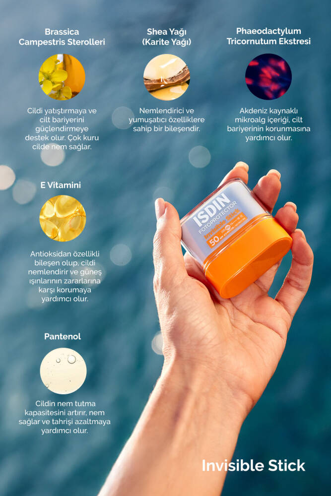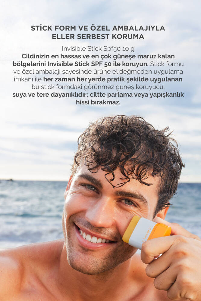 - Invisible Stick SPF 50, güneşe en çok maruz kalan ve en hassas cilt bölgelerine yüksek UVB/UVA koruması sağlamak üzere geliştirilmiştir.