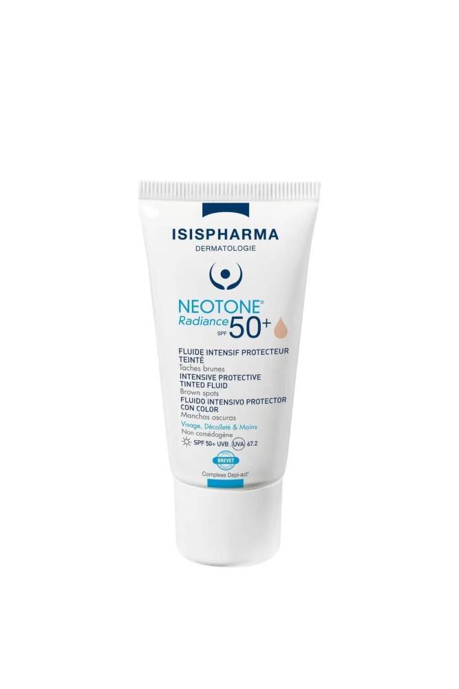 Ürün Açıklaması: Leke karşıtı bakım yapmaya yardımcı SPF50+ renkli güneş kremi Kullanım Şekli: Sabahları tüm yüz, boyun ve ellere uygulayınız.
