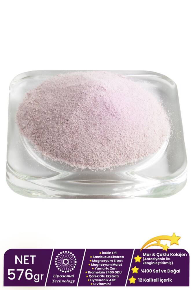 • %100 Saf ve Doğal Mor & Çoklu Kolajen Peptitleri içeren Lipozomal Teknoloji Diyet Takviyesi (576gr)