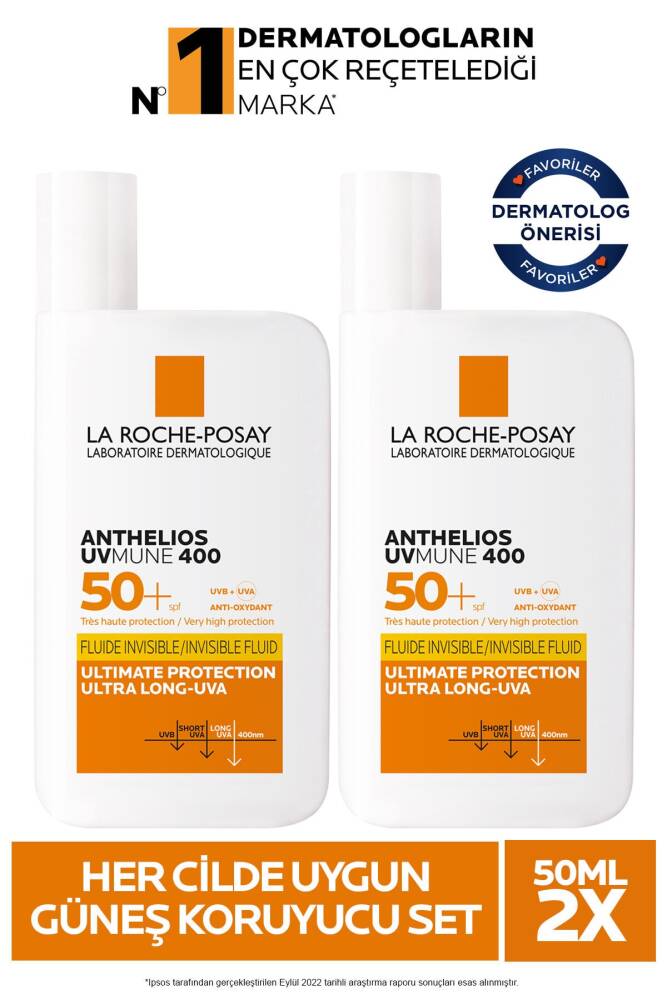 La Roche Posay Anthelios Uvmune Fluide Her Cilde Uygun Yüksek Korumalı Yüz Güneş Kremi Set 50 Mlx2