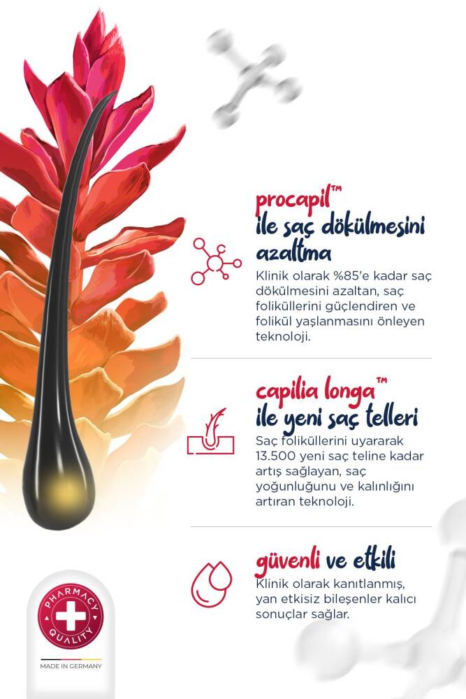Ayrıca procapil™ ve capilia longa™ dökülme azaltma, saçın hızlı uzaması gibi bir dizi etkinliğin karşılaştırmalı analizinde daha güçlü olduğu klinik çalışmalarla kanıtlanmıştır