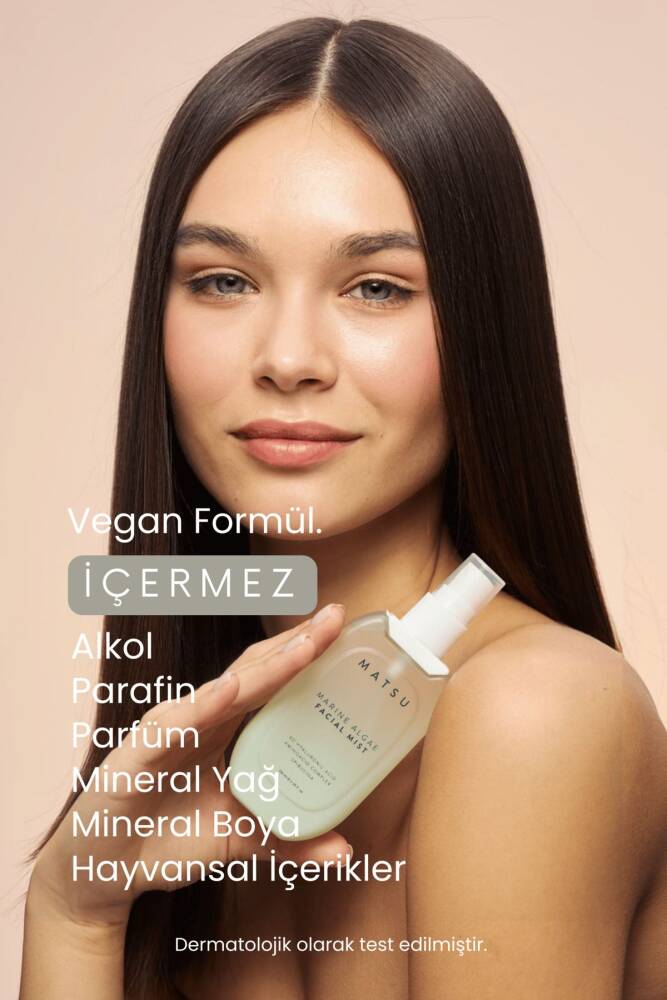 Marine Algae Yüz Misti, deniz yosunu özleri ve 8 farklı molekül boyutunda Hyaluronik Asit ile cildi anında nemlendirir, canlandırır ve gün boyu tazelik hissi verir. Vegan formüllüdür; alkol, boya, sülfat ve parfüm içermez. Özellikle kuru ve gözenekli ciltlere uygundur.