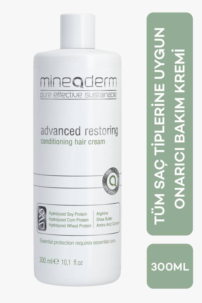 Mineaderm Advanced Restoring Onarıcı Saç Bakım Kremi 300 ml Advanced Restoring Conditioning Hair Cream, saç için gerekli aminoasitler, mineraller, vitaminler ve bitki özlerinden oluşan bileşimiyle, saçın hacimli, parlak görünümünü destekler. Çevresel etkenlere ve kırılarak kopmalara karşı dayanıklı saç teli oluşumuna destekler. Saçları nemlendirip, besler ve kolay taranmasını sağlar. Temizlenmiş nemli saç uçlarına uygulayınız, bir süre beklettikten sonra durulayınız. Göz ile temas ettirmeyiniz, temas durumunda bol su ile temizleyiniz.