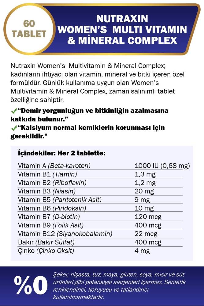 Nutraxin Multivitamin Kadın, Multivitamin & Mineral Complex