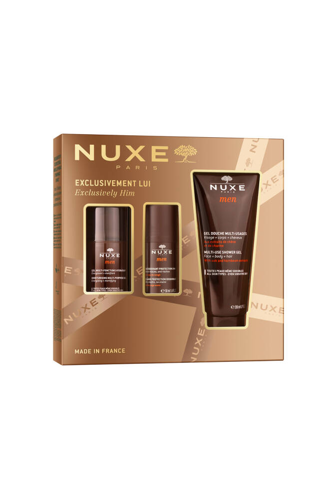 Nuxe Men Set erkek cildine günlük bakım sağlamak için çok amaçlı temel ürünleri bir araya getiriyor.
