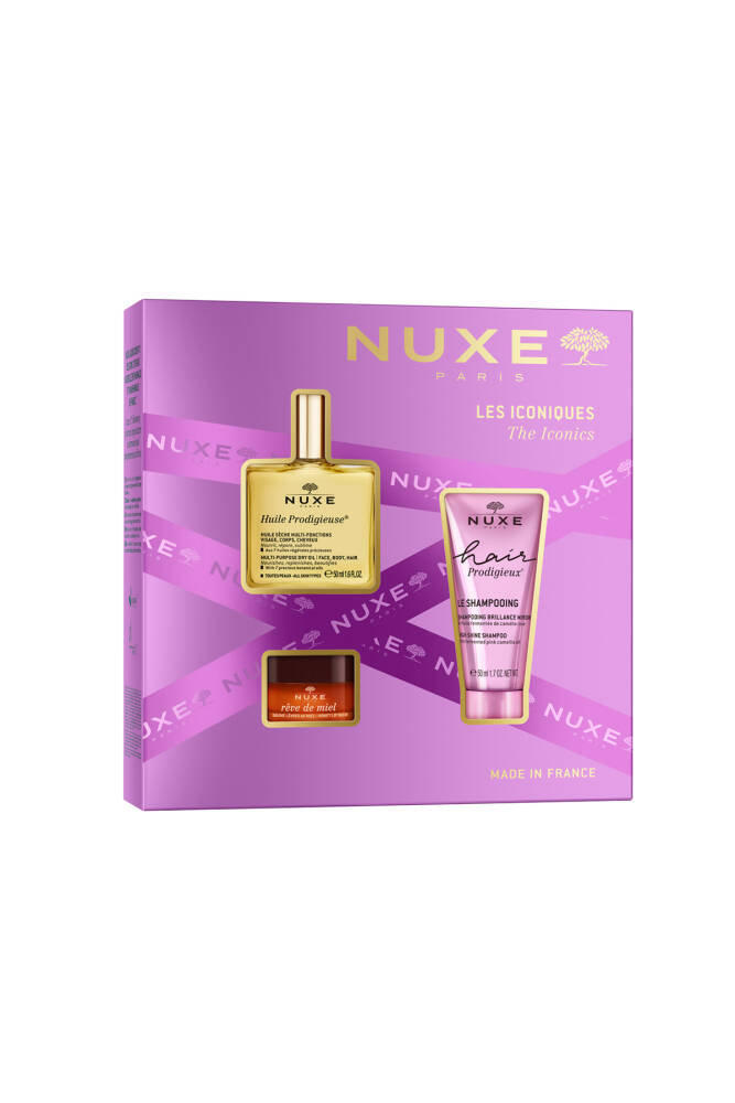 Bu hediye seti şunları içerir:Huile Prodigieuse® 50 mlHair Prodigieux® Yüksek Parlaklık Şampuanı 50 mlRêve de Miel Bal Özlü Yoğun Besleyici ve Onarıcı Dudak Balmı 15 gTüm cilt bakım ürünleri Fransa’da formüle edilip üretilmiştir.