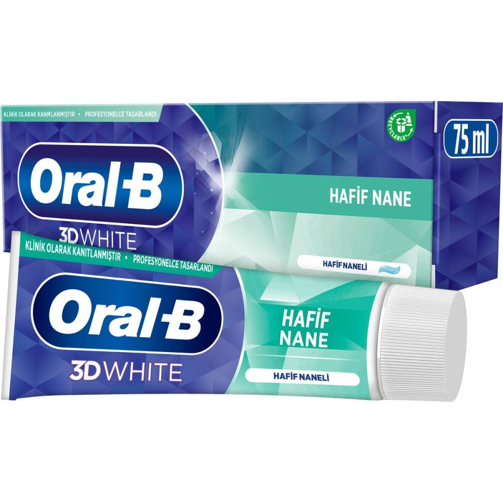 Oral-B 3d White Hafif Nane Diş Macununun Yüzey Lekelerini %87’Ye Varan Oranda Giderdiği Klinik Olarak Kanıtlanmıştır. Yüzey Lekelerini Giderme Teknolojisiyle İlk Fırçalamadan İtibaren Beyazlatmaya Başlar. Diş Hekimleri İle Geliştirilmiş Formulü Serin Esinti Teknolojisiyle Ferah Bir Fırçalama Deneyimi Sunar. Oral-B 3d White Hafif Nane Diş Macunu Diş Minesi İçin Güvenlidir, Hafif Nane Tadına Sahiptir. Diş Hekimleri Günde 2 Kez Düzenli Kullanım Yapılmasını Ve Diş Fırçanızın 3 Ayda 1 Değiştirilmesini Tavsiye Eder.