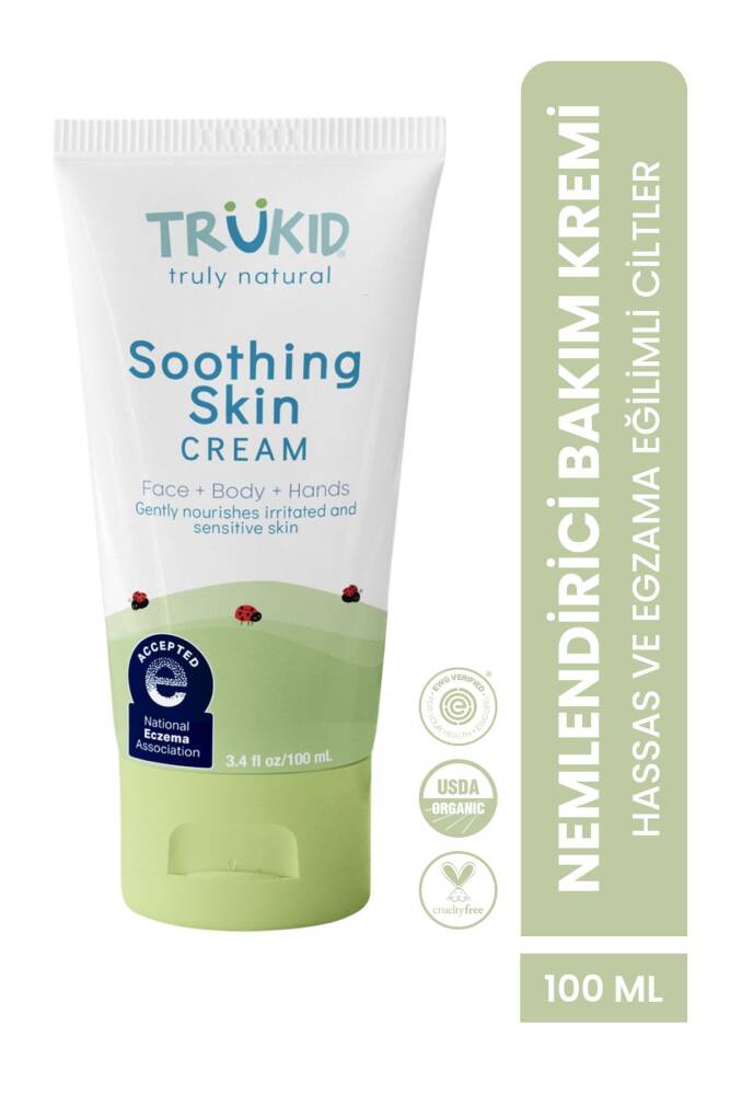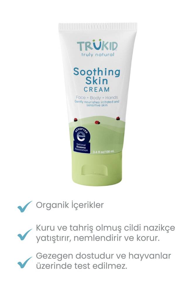 Hassas ve egzama eğilimli ciltler için özel olarak geliştirilen TruBaby Soothing Skin Eczema Cream, yoğun nemlendirme sağlarken kuruluk, kızarıklık ve kaşıntı hissini yatıştırmaya yardımcı olur. Bitki bazlı seramidler, aloe vera, sheabutter ve kakao yağı ile zenginleştirilmiş formülüyle cilt bariyerini destekler. Kokusuzdur, steroid, paraben ve fitalat içermez. Pediatrik ve dermatolojik olarak test edilmiştir, National Eczema Association (NEA) tarafından onaylanmıştır.