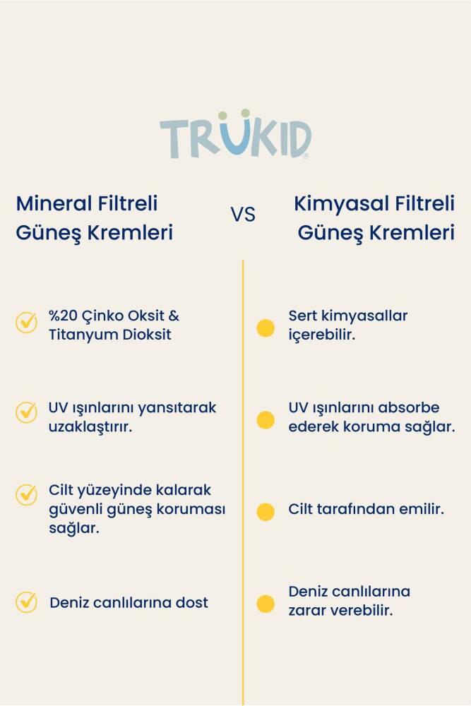 TruBaby SPF30 Sunscreen, hassas ve egzama eğilimli ciltlerin günlük ihtiyacına yönelik mineral (fiziksel) filtreli bir güneş koruyucudur. Çinko Oksit (Non-Nano) ile UVA/UVB geniş spektrum koruma sunar; kokusuz formülü çocukların ve bebeklerin hassas ciltleri için uygundur. Suya ve tere dayanıklıdır, paraben/fitalat/renklendirici içermez.