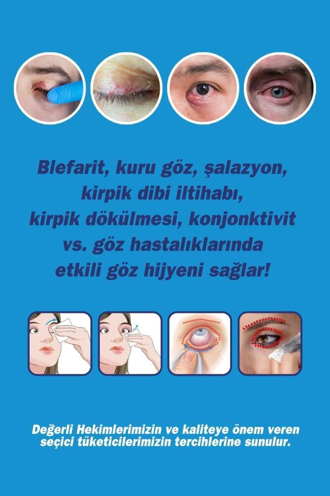 Uyarı: Haricen kullanılır. Her iki göz için ayrı mendil kullanınız. Tahriş hissedilirse uygulamayı bırakınız ve göz hekiminize danışınız. Çocukların erişemeyeceği yerde saklayınız.