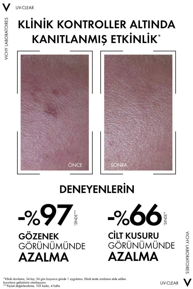 • UV-CLEAR, Netlock Teknolojisi ile güçlendirilmiştir ve gelişmiş bir UVA, UVB SPF 50 + koruması sağlar.