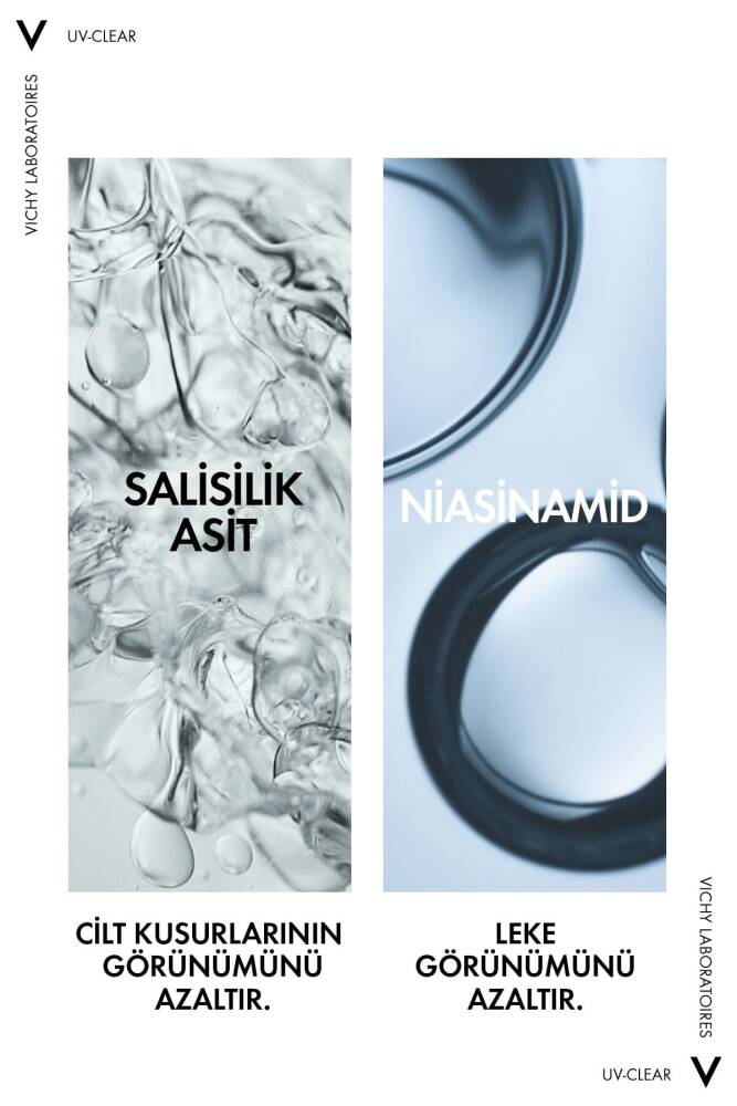 • Hafif formülü, cilt kusurlarının görünümünü azaltmak için salisilik asit ve niasinamid ile zenginleştirilmiştir: