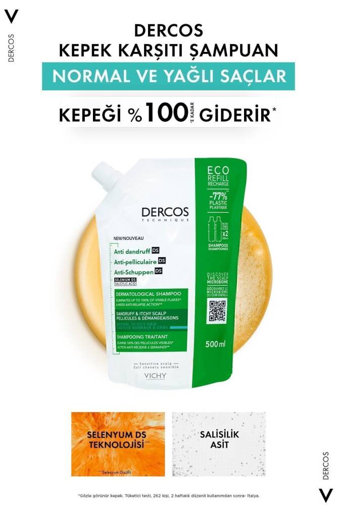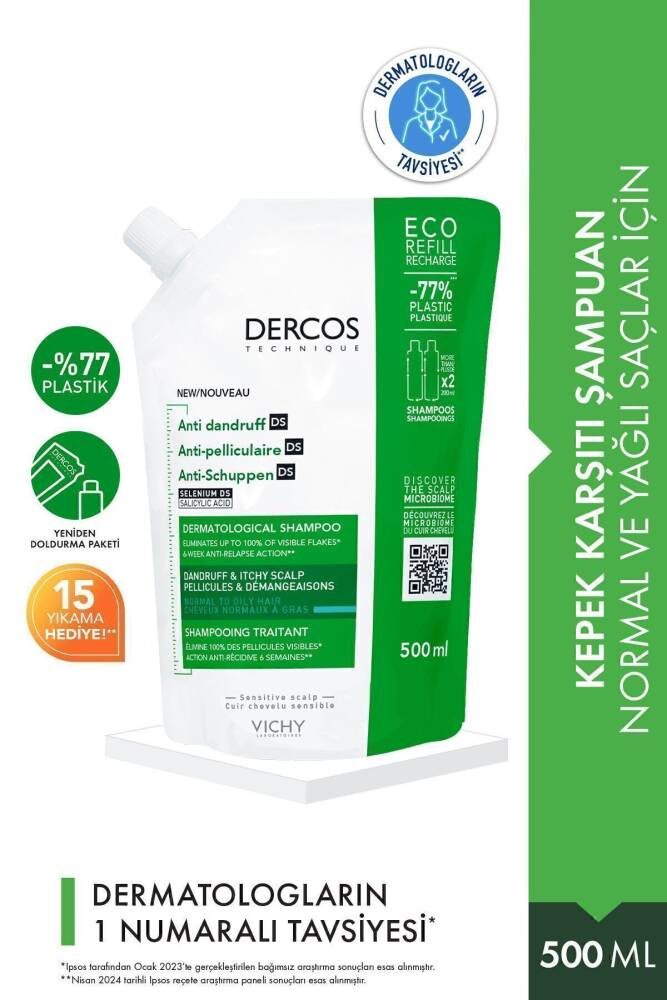 Vichy Dercos Normal/Yağlı Saçlar İçin Kepek Karşıtı Saç Bakım Şampuanı Yeniden Dolum Paketi 500 ML
